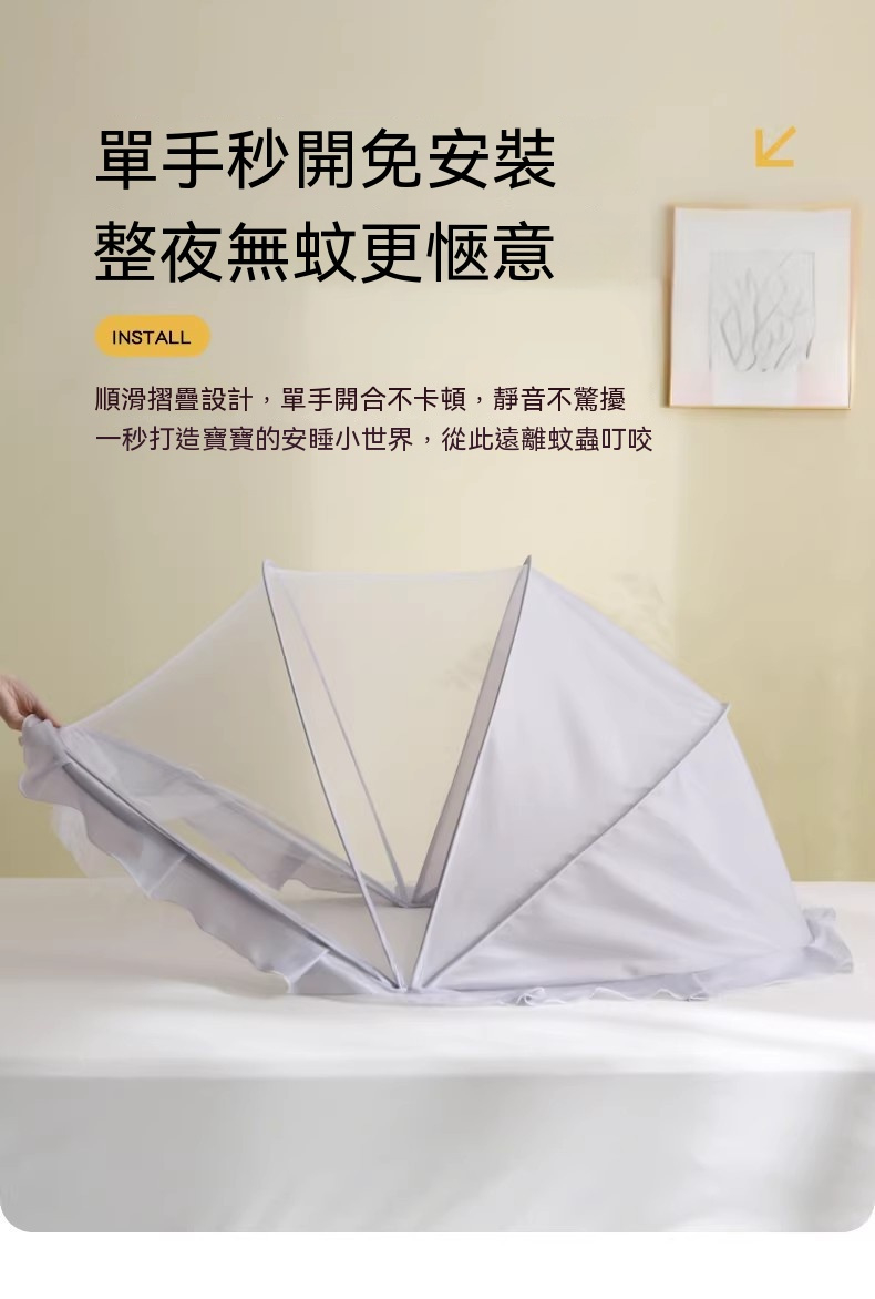 【蚊子退散!寶寶一夜好眠的秘密武器】 兒童防蚊帳|免安裝秒開 × 遮光不驚醒 × 3cm摺疊收納