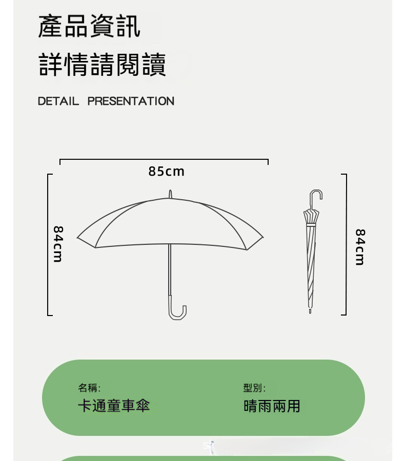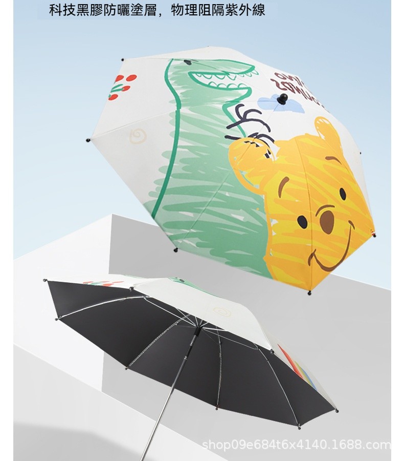 【推車不再像烤箱!這把傘讓寶寶出門涼爽又防曬】 萌趣卡通遮陽傘|可裝車可手持 × 黑膠降溫 × 晴雨兩用