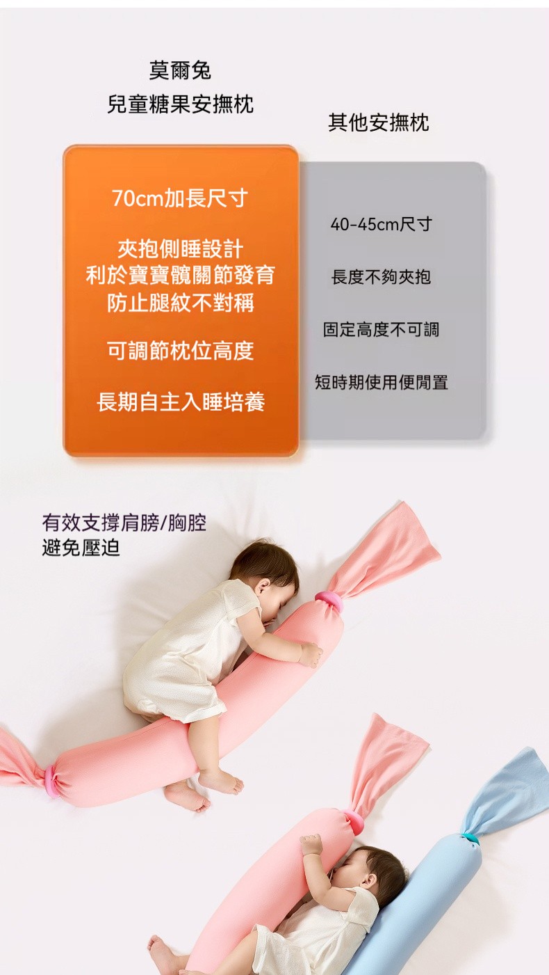 ? 從出生陪伴到學步!「莫爾兔糖果安撫枕」蒙氏育兒理念,給寶寶科學守護的成長枕 ?